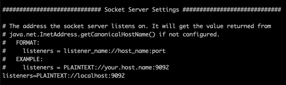 listeners=PLAINTEXT://:9092 주석을 풀고 localhost를 입력한다.